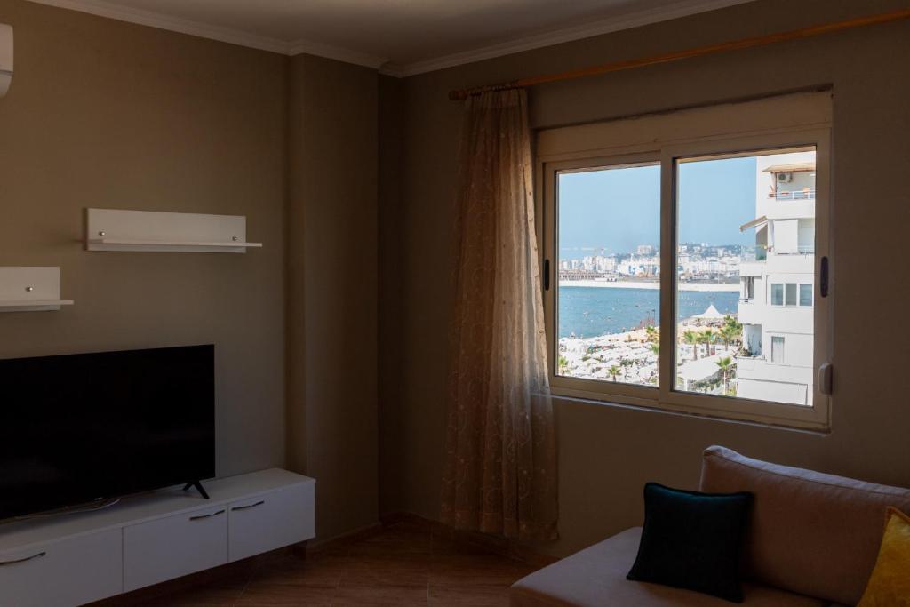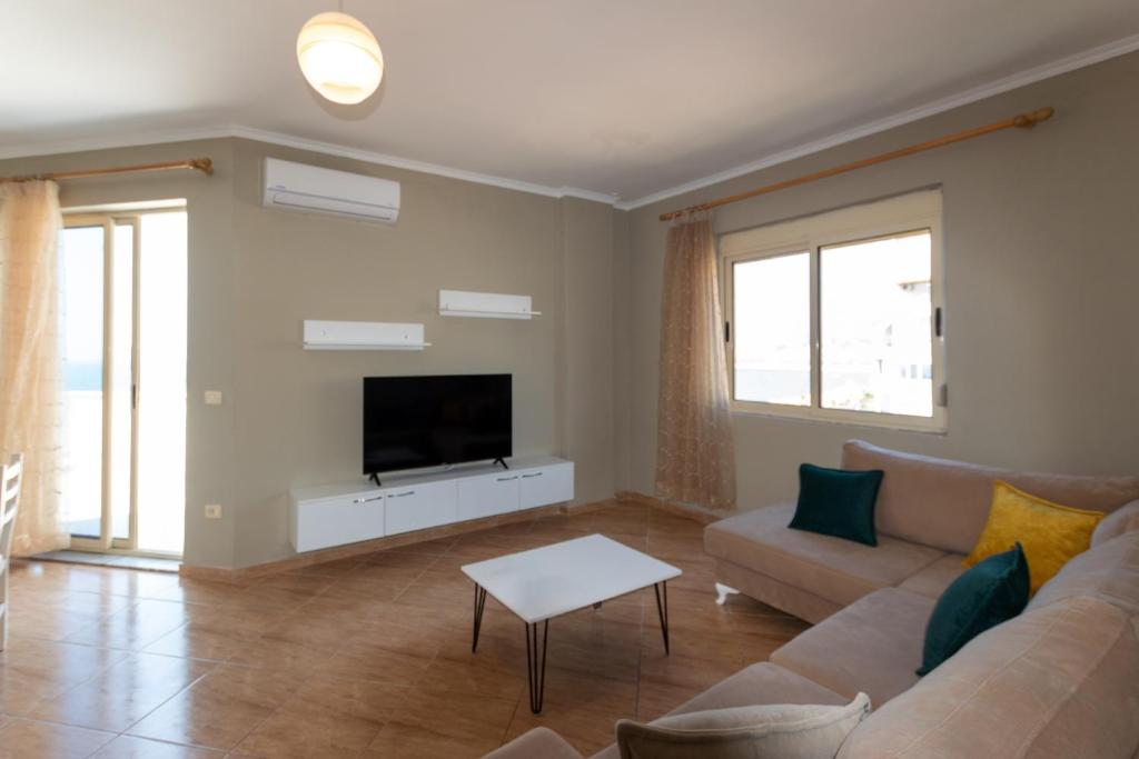 Beachfront Location: Two-Bedroom Sea View Suite in Durrës offers direct beachfront access and stunning sea views. Guests can relax on the sun terrace and enjoy the serene beachfront setting. Modern Amenities: The apartment features free WiFi, air-conditioning, and a fully equipped kitchen. Additional amenities include a washing machine, balcony, and terrace, ensuring a comfortable stay. Convenient Services: Private check-in and check-out services, a paid airport shuttle, and a minimarket are available. The property also provides paid on-site private parking, luggage storage, and express check-in and check-out services. Nearby Attractions: Durres Beach is a 1-minute walk away, while Skanderbeg Square is 37 km from the property. Other attractions include the Rock of Kavaje (8 km) and Durres Amphiteatre (4 km).