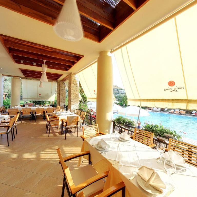 Rapos Resort Hotel is located 50 m from a pebbly beach and 1.5 km from the centre of Himare. It offers a bar and restaurant with a terrace, an outdoor pool and a private beach. Free Wi-Fi and parking are provided.