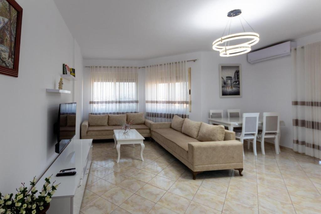 Spacious Accommodation: Spacious 2 bedroom apartment in Durres Beach offers a recently renovated layout with two bedrooms and a living room. Guests enjoy sea views, air-conditioning, and a balcony. Modern Amenities: The apartment features free WiFi, a fully equipped kitchen, washing machine, and streaming services. Additional amenities include a dining area, sofa bed, and private entrance. Prime Location: Located in Durrës, the property is a 2-minute walk from Durres Beach. Tirana International Mother Teresa Airport is 34 km away. Nearby attractions include Rock of Kavaje (8 km) and Durres Amphiteatre (3.8 km). Guest Favorites: Guests highly rate the beachfront access, convenient location, and attentive host.