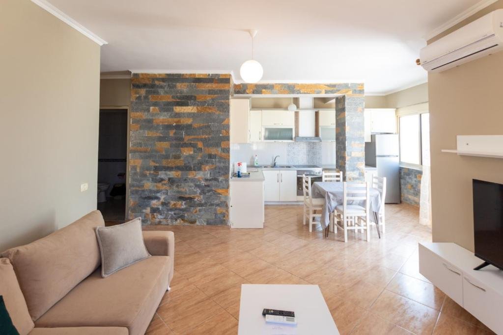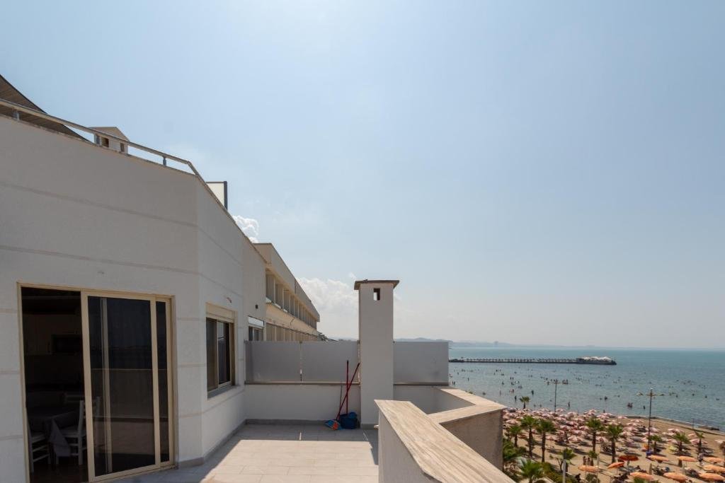 Beachfront Location: Two-Bedroom Sea View Suite in Durrës offers direct beachfront access and stunning sea views. Guests can relax on the sun terrace and enjoy the serene beachfront setting. Modern Amenities: The apartment features free WiFi, air-conditioning, and a fully equipped kitchen. Additional amenities include a washing machine, balcony, and terrace, ensuring a comfortable stay. Convenient Services: Private check-in and check-out services, a paid airport shuttle, and a minimarket are available. The property also provides paid on-site private parking, luggage storage, and express check-in and check-out services. Nearby Attractions: Durres Beach is a 1-minute walk away, while Skanderbeg Square is 37 km from the property. Other attractions include the Rock of Kavaje (8 km) and Durres Amphiteatre (4 km).